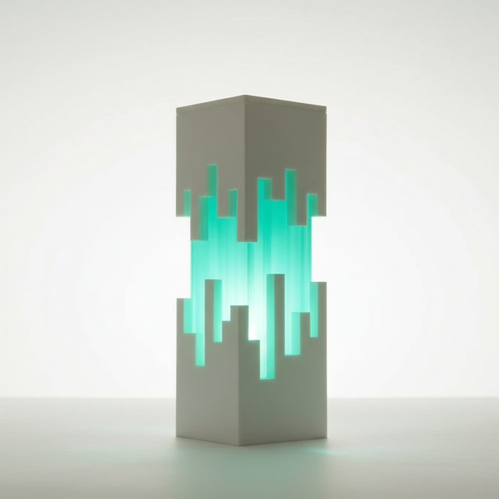 The Future Prism Lamp features a clean, geometric silhouette with subtle cutouts that softly diffuse ambient light. Inspired by futuristic architecture, its structured form creates a calm, modern presence that enhances contemporary interiors.